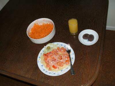 Da ich mich hier größtenteils selbst versorgen und dementsprechnd auch selber bekochen muss, zeige ich euch mal, was es eben gerade gab: