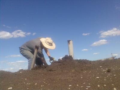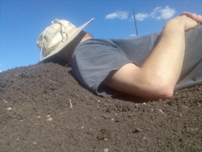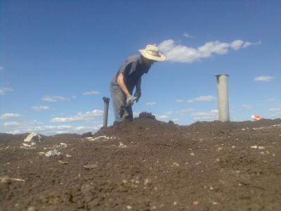 After that musste ich neben einem Bewässerungsgraben ein loch buddeln, das wir dann kurz vor feierabend mit Beton und einem Stahlpfeiler ausfüllten.