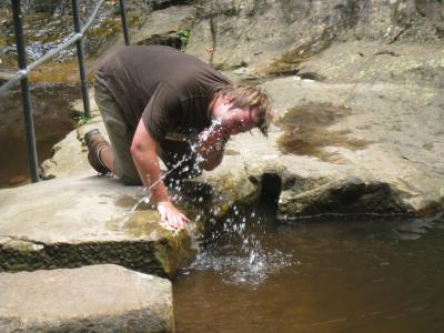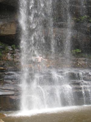Beeindruckt von Natur und Landschaft kamen wir am Fuß des Wasserfalls an, wo wir in den kleinen See hüpften, der sich dort gebildet hatte. Ich suchte mir einen Weg um durch den Wasserfall in den See springen zu können. War auch erfolgreich und wirklich spassig.