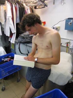 Der wär sonst umgefallen, und der Inder, der den normalerweise hält musste mal auf Klo, deswegen habe ich mich erbarmt!