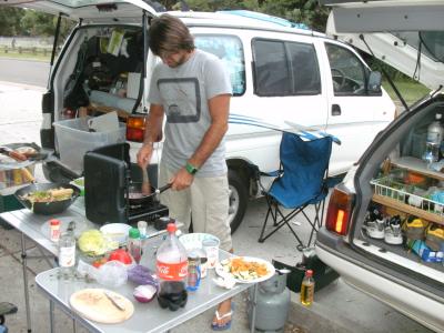 Danach sind wir dann nach Bateman’s Bay gefahren, haben dort genächtigt und sind am nächsten Tag(Sonntag, den 23.1.) in den örtlichen K-Mart gegangen und ich habe mir Arbeitsschuhe und –socken gekauft. Gegen Mittag fuhren wir nochmal nach Jervy’s Bay, wo wir mit den Schweizern schon mal waren und haben uns dort entspannt und zum letzten Mal gemeinsam was Leckeres zu essen gekocht.