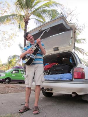 Ich in Airlie Beach mit der Gitarre, die Tom mir großzügigerweise überlassen und der ich versuche ab und zu mal ein paar wohlklingende Töne oder Melodien zu entlocken: