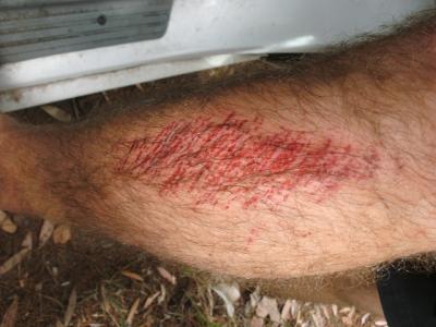 Hier eine fiese Schürfwunde vom Fußball spielen:
