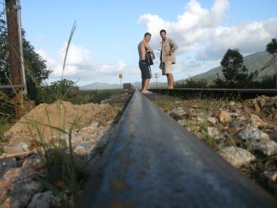 Auf dem Weg zum kleinen Fluss, wo wir auch das einm oder andere Mal waren, man musste immer über eine Eisenbahnbrücke:
