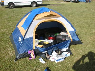 Hier mal ein Bild von dem Zelt an einem Sonnigen Tag. Dafür war es echt in Ordnung, ein Schönwetterzelt sozusagen.